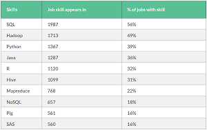 The report also included data on the top in-demand skills in data science, which was culled from examining LinkedIn job postings and which was released earlier this year by CrowdFlower.