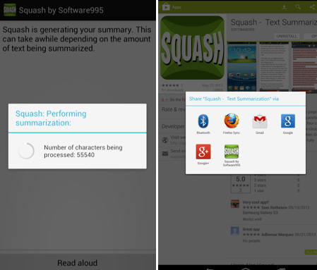 Squash can be used for analyzing and recapping web pages, news pieces or scientific articles, social media and blog posts, emails. The app gets the main idea and comes up with an abstract the length of which you determine yourself (it may be 4 or 8 sentences). The obtained info can be sent via email or social networks. Squash carries out text analysis thanks to a combination of multivariate statistics and natural language processing. Other app’s features are outlined here.